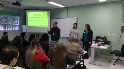 A técnica de enfermagem Daniela Santos Alves, aluna da primeira turma da Escola GHC, que hoje trabalha no Hospital Conceição, também compareceu no encontro, contribuindo com o relato sobre os conhecimentos e oportunidades adquiridas em sua trajetória na Escola.