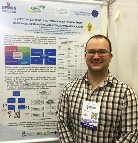 O odontólogo da Unidade de Saúde SESC do Serviço de Saúde Comunitária do Grupo Hospitalar Conceição (GHC) Daniel Demétrio Faustino da Silva recebeu o prêmio principal na modalidade Pesquisa Odontológica de Ação Coletiva na 33ª Reunião da Sociedade Brasileira de Pesquisa Odontológica, que ocorreu entre os dias 7 e 11 de setembro, em Campinas, São Paulo.