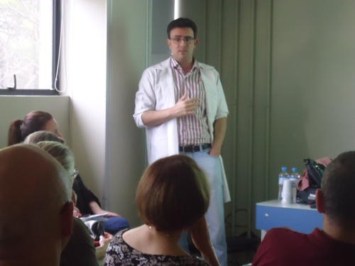 O encontro foi dividido em duas etapas, sendo que, na primeira, o convidado para abordar o tema “O que é demência?”, foi o médico neurologista do HNSC Raphael Castilhos. Raphael Castilhos realizou uma breve explicação sobre o que é demência: “Quando se fala em demência, se liga ao Alzheimer, mas existem outras demências”, explicou. Ele também ressaltou a importância da realização do diagnóstico correto: “É fundamental diferenciar demência de depressão, porque a depressão é possivelmente reversível”, disse. Castilhos ainda relatou que um dos principais sintomas do início da doença de Alzheimer é a dificuldade de absorver novas informações.