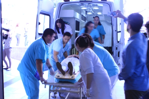 As vítimas-atores são alunos da Universidade Federal de Ciências da Saúde de Porto Alegre (UFCSPA). O simulado transcorreu com sucesso, sem interrupção no atendimento real da Emergência.