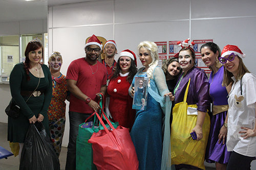 Fantasiados como personagens de filmes infantis, a Liga da Alegria, grupo voluntário composto por funcionários do Grupo Hospitalar Conceição (GHC), realizou na tarde desta quarta-feira, 21 de dezembro, uma distribuição de presentes no HCC.
