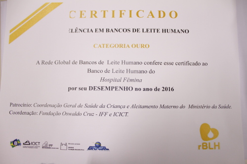 O processo de credenciamento dos Bancos de Leite Humano no Programa Iberoamericano, iniciativa resultante da articulação da Coordenação Geral da Saúde da Criança e do Centro de Referência Nacional da Rede Brasileira de Bancos de Leite Humano (CRNBLH), atribuiu a Categoria Ouro ao Banco de Leite do Hospital Fêmina.