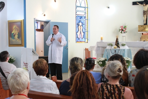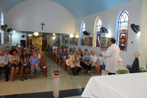 Levada ao altar pelos voluntários religiosos da igreja católica que fazem atendimento espiritual no GHC e pelo padre Querino José Ludwig da paróquia Divino Espírito Santo, a imagem foi reverenciada durante a missa conduzida em homenagem aos pacientes internados no HNSC.