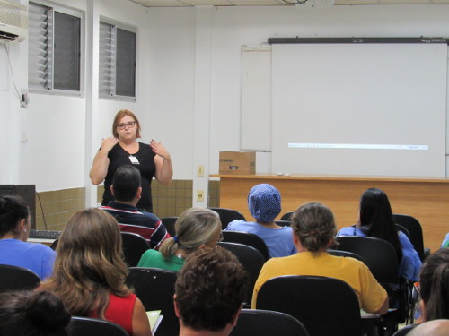 Imagens do feminino e noções de gênero foram apresentadas no encontro. Renata instigou como isso constitui o ambiente de trabalho. “Não é por acaso que boa parte de quem trabalha aqui no hospital é mulher. É razoável mulher trabalhar com cuidado,educação, etc”, problematizou ela.