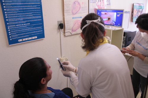 “Me disseram que eu não podia ir ao dentista”, contou a gestante Josiane Muller de Souza em ação do Grupo Qualidade em Saúde, realizada no ambulatório do Hospital Fêmina nesta quarta-feira, 31 de Maio. Na ocasião, foram realizados diagnósticos por imagem digital com a tecnologia Check-up Preventivo Digital, mini palestra sobre pré-natal odontológico e distribuição de material informativo.