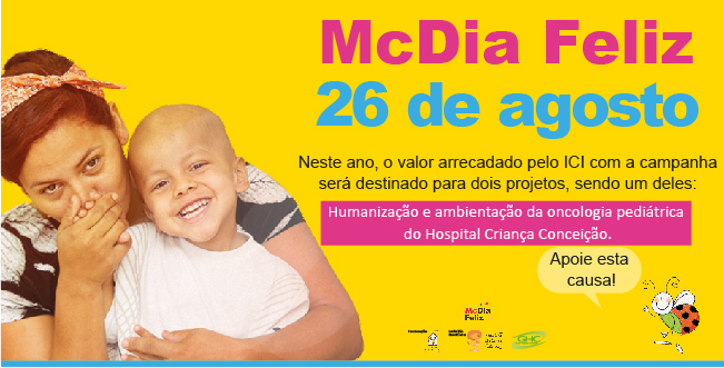 Adquirindo antecipadamente o tíquete que vale um Big Mac (sanduíche), no valor unitário de R$ 15,50, você estará colaborando com a reforma da oncologia pediátrica do Criança Conceição (HCC), pois o montante integral arrecadado será destinado ao hospital. O tíquete somente poderá ser resgatado no dia 26 de agosto, o já conhecido McDia Feliz.