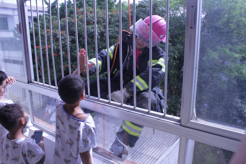 A ação dos bombeiros visou mostrar um pouco do trabalho dos "heróis da vida real". Eles desceram o paredão de forma controlada, por meio de cordas, e acompanhados dos demais equipamentos de segurança. Durante a descida os profissionais interagiram com as crianças que estavam acompanhando a visita pelas janelas do hospital. O importante foi demonstrar como funciona uma operação tática, de estratégia militar.