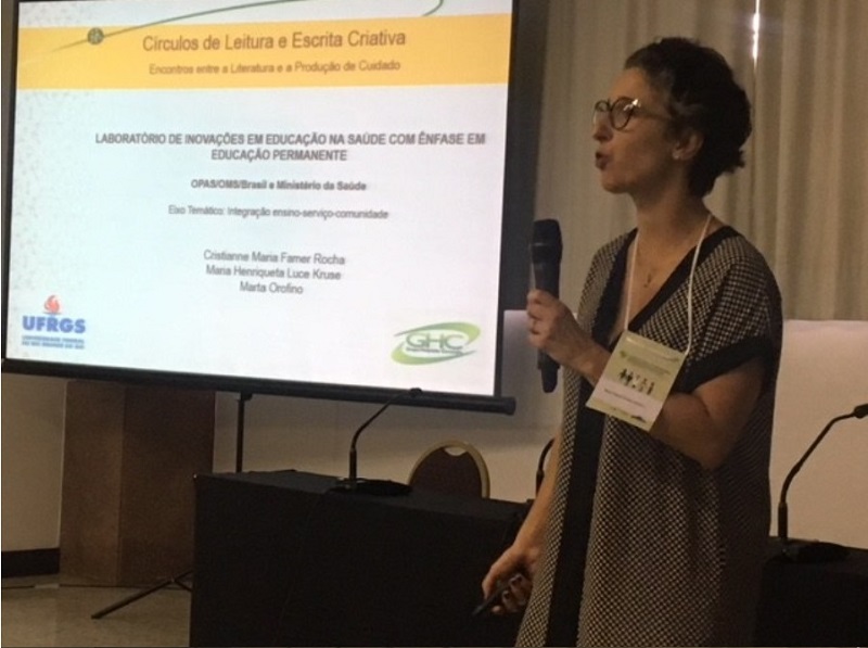 Representando a Gerência de Saúde Comunitária do Grupo Hospitalar Conceição, Marta Orofino, terapeuta ocupacional da equipe dos Gestores do Cuidado participou do seminário “Laboratório de Inovação em Educação na Saúde”, em Brasília. Tendo início na terça-feira, 6 de março, o evento reuniu 45 experiências desenvolvidas no Sistema Único de Saúde (SUS) com ênfase em Educação Permanente. O encontro, que se encerrou nesta quinta, 8, fez parte da segunda etapa de seleção do Laboratório de Inovação que sistematizará e divulgará 15 experiências inovadoras no tema.