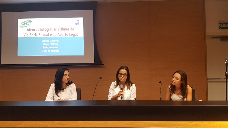 Para encerrar o seminário, o tema “Atenção Integral a Vítimas de Violência Sexual e ao Aborto Legal” foi abordado pela assistente social Lisiane Hoff Villeroy, pela psicóloga Paula Nunes Mousquer e pela enfermeira Rosiê Laiza Fraga de Andrade. Elas comentaram sobre a importância de um tratamento eficiente para mulheres que sofrem violência sexual. “Deve existir todo um cuidado, antes de realizar o aborto. Há uma aproximação da equipe com a mulher, um procedimento longo, mas eficiente no tratamento”, afirma Paula. Elas também mostraram o depoimento de uma mulher que sofreu violência, mas conseguiu aos poucos se recuperar.