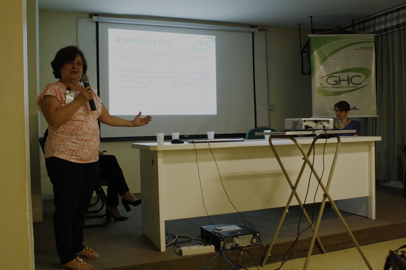 "O conceito básico por trás é que o paciente é dono do seu corpo, e o que for feito com ele, o paciente precisa consentir", trouxe a médica Elaine Segura que apresentou ainda uma abordagem histórica a cerca do Comitê de Bioética do GHC e, mais especificamente, do subgrupo de trabalho que atua com o Consentimento Informado.