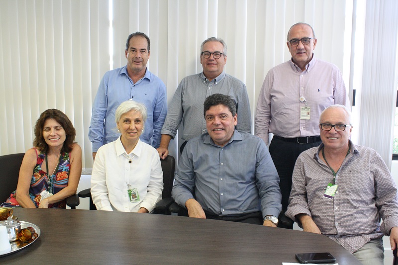 Em reunião com representantes da diretoria do GHC, o professor discutiu temas sobre o serviço de atenção primária às doenças crônicas e como pode ser implementado fora do Grupo. Os gerentes José Fossari, Alexandre Bessil e Antônio Fernando Selistre, juntamente com o coordenador de Pesquisa da Gerência de Ensino e Pesquisa (GEP), Sérgio Sirena, conduziram o encontro.
