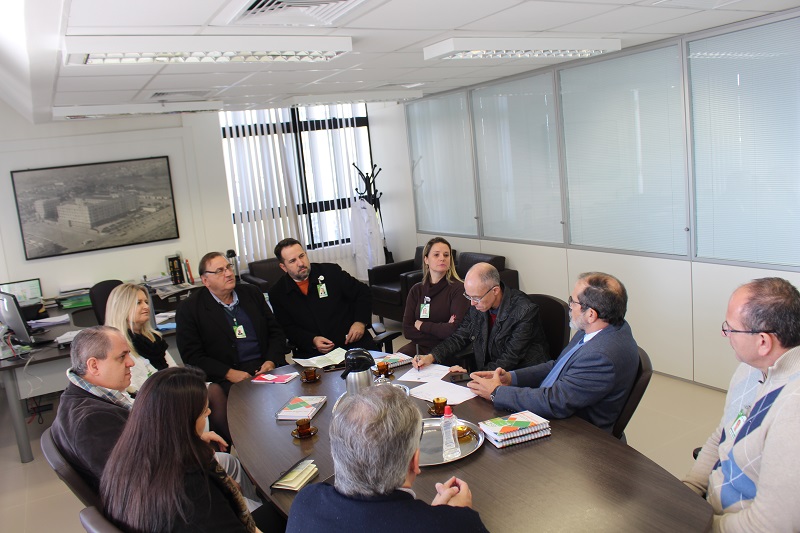 A reunião contou com a participação da superintendente do GHC, Adriana Denise Acker, do diretor técnico, Mauro Sparta, do diretor administrativo e financeiro, José Ricardo Agliardi Silveira, do gerente de Ensino e Pesquisa (GEP), Geraldo Pereira Jotz, do coordenador de Pesquisa, Sérgio Antônio Sirena, do coordenador administrativo da GEP, Abrahão Assein Arús Neto, e da assistente de coordenação, Márcia Adriana Poll.