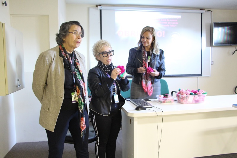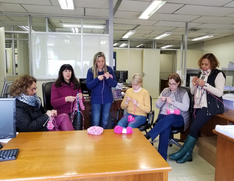Participaram do lançamento do projeto a gerente de Administração do HF, Denise Maria Jornada Braga, a médica da UTI Neonatal do Hospital Fêmina Suzete Saraiva, a técnica administrativa responsável pelo suporte à ação, Joana Jobim, e funcionárias do hospital. Na abertura, Denise Maria Jornada Braga falou com entusiasmo sobre o projeto. "A ideia é fazer disso um alerta de saúde e lembrar as nossas mulheres da importância do diagnóstico precoce", pontuou a gerente. "O tempo é o que temos de mais importante para ofertar às pessoas", falou a médica proponente da ação, Suzete Saraiva. Ela lembrou que a prática de tecer fios é comum entre os funcionários da UTI Neonatal do HF com a finalidade de produzir sapatinhos e tocas para os recém-nascidos.