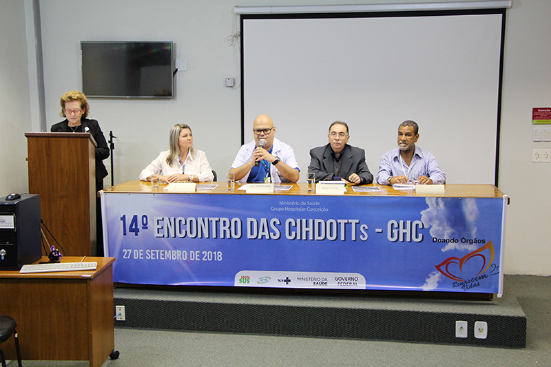 Na mesa de abertura, estavam presentes o médico Sérgio Paulo da Cunha, representando no ato o gerente de Internação do HCR, João Albino Potrich, o coordenador das Cihdotts do GHC, José Luís Toríbio Cuadra, a vice-presidente das Cihdotts da instituição, Glacy Piccinini, e o membro da Cihdott HCR Manoel Silveira. Para José Luís Toríbio Cuadra, o evento vai proporcionar a capacitação dos profissionais da saúde do GHC. “Hoje a Cihdott do Grupo Conceição não trabalha só na captação, temos uma interface muito mais ampla para a sociedade, trabalhamos também com a educação continuada e com a produção científica sobre o tema”, contou o médico.