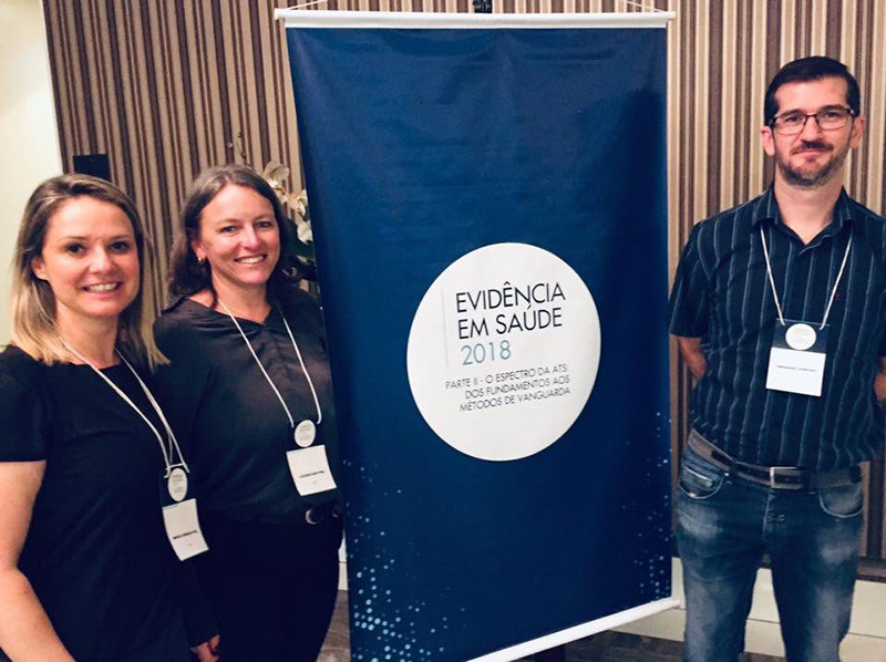 Integrantes da equipe da Gerência de Ensino e Pesquisa, a enfermeira Márcia Adriana Poll, a farmacêutica Luciane Kopittke e o médico Fernando Anschau participam nesta sexta-feira, 23 de novembro, em Brasília/DF, do evento Evidência em Saúde 2018 - O espectro da ATS: dos fundamentos aos métodos de vanguarda. Eles fazem parte da segunda etapa da capacitação sobre análise econômica de tecnologias em saúde.