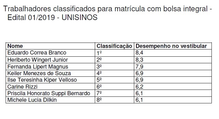 A Gerência de Ensino e Pesquisa do Grupo Hospitalar Conceição divulgou na tarde dessa quinta-feira, 21 de fevereiro, a lista dos oito funcionários do GHC classificados para cursos com bolsa de estudo integral na Unisinos. Os cursos são na modalidade de ensino à distância.