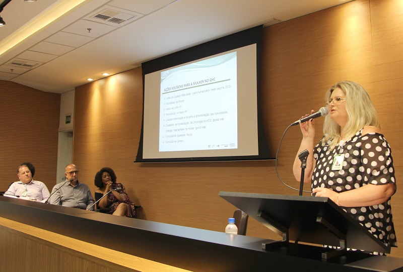 A diretora-superintendente do GHC, Adriana Acker saudou a presença da mesa e do público e salientou a importância da data para as mulheres, que, na instituição, são a maioria. “Temos mais de 9.500 funcionários, 73% mulheres. Já em cargos de chefia - gerentes, coordenadores, auxiliares de coordenação e supervisores - 52% são mulheres o que é pouco, se somos 7.000 no Grupo”, ressaltou Adriana.