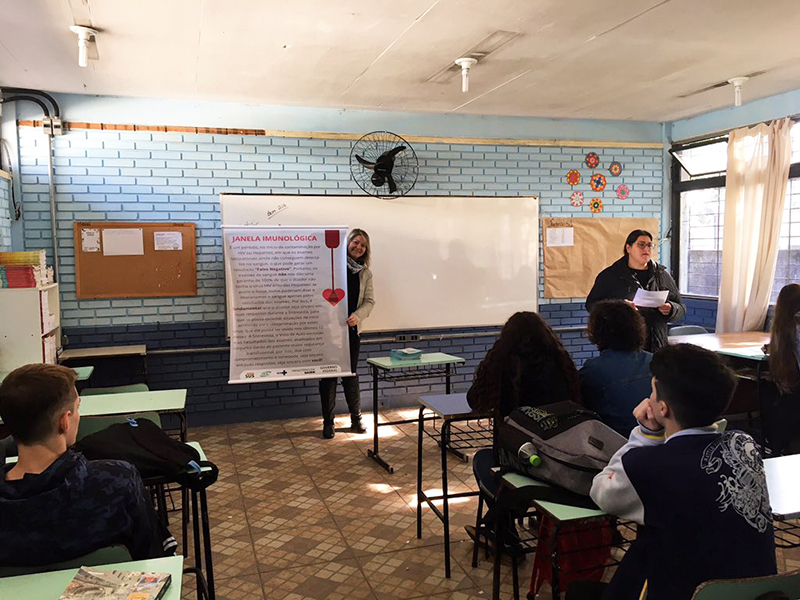 Nesta quinta-feira, dia 11 de julho, a enfermeira do Banco de Sangue do GHC Andréa Porcher, junto com a sua estagiária de Publicidade e Propaganda, Gabriela Helvinger, compareceram no Colégio Estadual Presidente Arthur da Costa e Silva, no Bairro Sarandi em Porto Alegre, para realizar uma palestra sobre a importância da doação de sangue. O convite foi feito pela diretora do colégio, Cláudia Acosta, que está organizando uma gincana para todas as turmas da escola, onde uma das tarefas é a doação de Sangue, estimulando os alunos a criarem o hábito de fazer doações e, consequentemente, fazer o bem ao próximo.