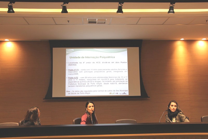 Ao abrir o evento, a médica psiquiatra Marina da Silva Netto apresentou um histórico da formação da Unidade de Internação Psiquiátrica do HNSC, destacando colaboradores que prestaram suportes para a manutenção do serviço. A coordenadora da unidade ainda lembrou outros serviços com atendimento à saúde mental pelo GHC, como o Ambulatório de Psiquiatria do HNSC, os CAPs e os postos de saúde que dão suporte aos pacientes após a alta hospitalar.