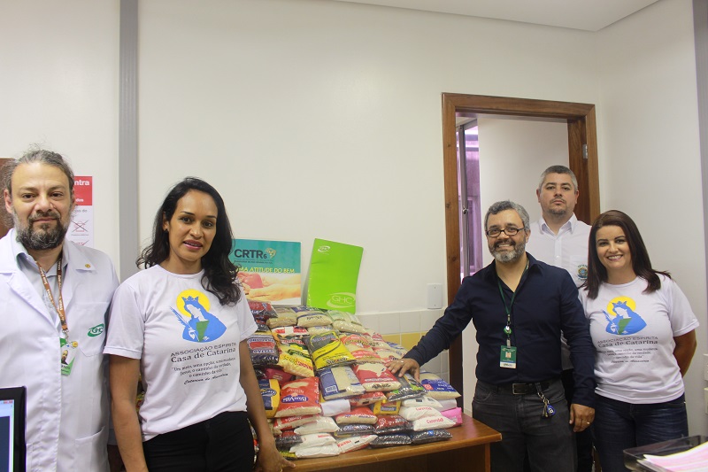 O Serviço de Imagem da Gerência de Unidades de Internação do Hospital Cristo Redentor (GUI/HCR) realizou na última na sexta-feira, dia 1ª de novembro, a entrega de 160 quilos de alimentos para a Associação Espírita - Casa de Catarina. Os itens alimentícios, entre eles arroz, massa e feijão, foram arrecadados durante o Ciclo de Palestras, realizado pelo Serviço de Imagem e o Conselho Regional de Técnicos em Radiologia 6° Região (CRTR), no dia 24 de outubro, no Auditório do HCR. No evento, foram abordados temas relacionados ao Outubro Rosa.