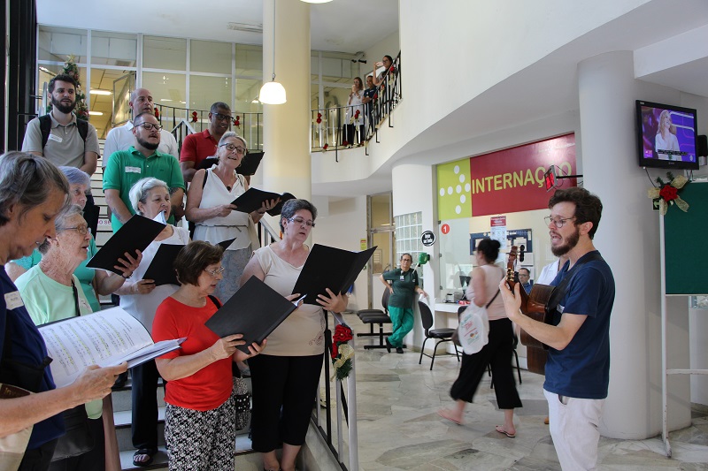 Os corais também passaram pelo quarto, quinto e sexto andares e entoaram cânticos natalinos para as pacientes.