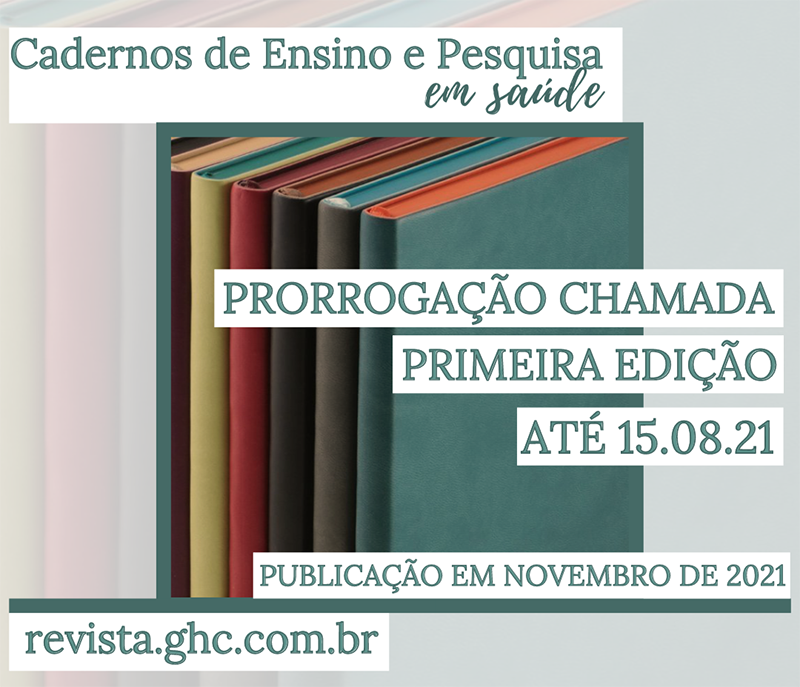 A Gerência de Ensino e Pesquisa do Grupo Hospitalar Conceição (GEP/GHC) informa a prorrogação do prazo para a submissão de manuscritos a serem publicados na primeira edição do periódico Cadernos de Ensino e Pesquisa em Saúde. Os manuscritos poderão ser submetidos por meio do site do periódico https://revista.ghc.com.br/index.php/cadernosdeensinoepesquisa/about até o próximo dia 15 de agosto. A primeira edição do Cadernos será lançada em novembro deste ano.