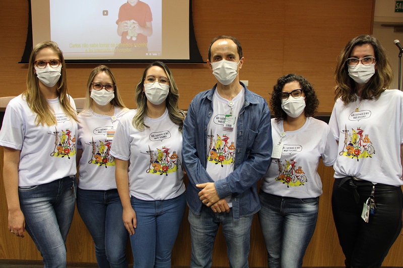 Ao final, foi a vez da Gestão de Risco Assistencial do HCC, que lançou os Mascotes das Metas de Segurança do Paciente, ferramenta inovadora na segurança do paciente pediátrico no Brasil. A equipe criou folhetos com os mascotes para explicar de forma lúdica para as crianças internadas as seis metas de segurança do paciente, que são: identificar corretamente o paciente; melhorar a comunicação entre profissionais de saúde; melhorar a segurança na prescrição, no uso e na administração dos medicamentos; assegura cirurgia em local de intervenção, procedimento e paciente corretos; higienizar as mãos para evitar infecções e reduzir o risco de quedas e de lesão por pressão. A criação dos mascotes e das histórias contou com a participação do psicopedagogo da Recreação do HCC, Sério Dório, que falou sobre o trabalho da ONG Saúde Criança, da qual faz parte e é parceira do HCC.