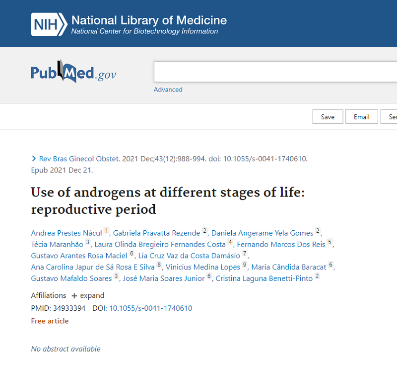 O artigo "Use of androgens at different stages of life: reproductive period”, de autoria da médica Andrea Prestes Nacul, da Unidade de Reprodução Humana do Hospital Fêmina, foi publicado pela Federação Brasileira de Obstetrícia (Febrasgo). O artigo fala sobre a proliferação exagerada de prescrições de androgênios para mulheres, associada a uma total desinformação sobre riscos e efeitos adversos.