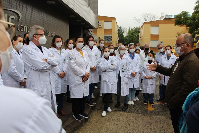 Na manhã desta quarta-feira, 22 de junho, foi realizado o exercício de evasão em caso de incêndio no Laboratório Central do Hospital Conceição. A atividade foi ministrada pelo coordenador da Brigada de Incêndio e técnico em segurança do trabalho, Alexandre de Almeida, e pelo técnico em segurança do trabalho Ricardo Nunes.