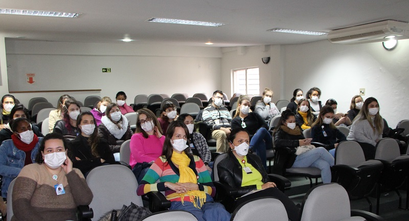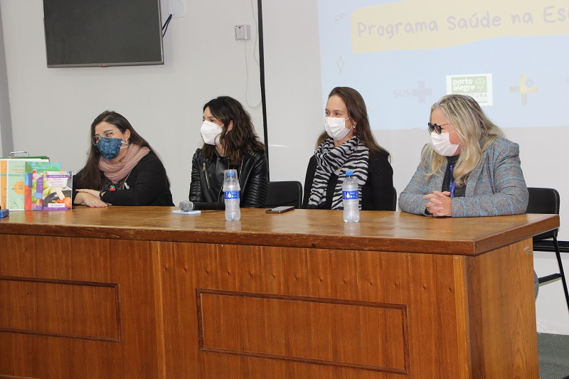 Além de Ingrid Machado e Cíntia Santos, também compuseram a mesa do evento a gerente de Saúde Comunitária do GHC, Helena Beatriz Cunha, e a nutricionista do Serviço de Saúde Comunitária do GHC e docente da Escola GHC Natália Jung.