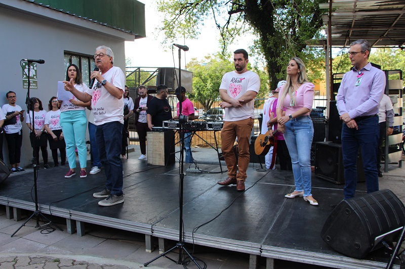 O evento, promovido pelo Serviço de Mastologia e voluntárias do Grupo da Mama do Hospital Conceição, teve início com a saudação dos gestores ao público, que destacaram a importância da conscientização para o câncer de mama, chamando a atenção da população sobre a informação, a prevenção, a doença e os direitos dos pacientes com câncer. Estiveram presentes, do Hospital Conceição, o gerente de Internação, David Kerber, a gerente de Administração, Marina Machado Dias, o gerente de Apoio, Élcio Carvalho, o coordenador do Serviço de Hematologia e Oncologia, Marcelo Capra, e o coordenador do Serviço de Mastologia, José Luiz Pedrini.