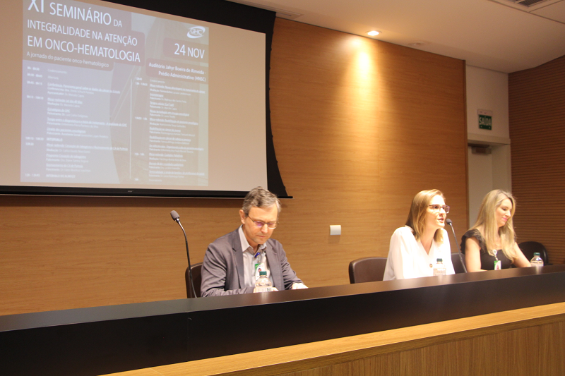 Nesta quinta-feira, 24 de novembro, no Auditório Jahyr Boeira de Almeida, foi realizado o 11º Seminário a Integralidade na Atenção em Onco-Hematologia - A jornada do paciente onco-hematológico, promovido pelo Programa de Residência Multiprofissional do Grupo Hospitalar Conceição (GHC). O seminário, alusivo ao Dia Mundial do Combate ao Câncer, contou com a presença de cerca de 150 funcionários de diversas áreas.