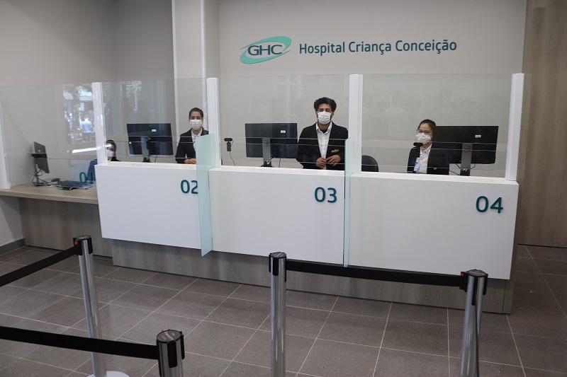 Com a presença de autoridades, gestores e funcionários foi inaugurada nesta sexta-feira, 9 de dezembro, a nova recepção dos hospitais Conceição e Criança Conceição. Localizado em área nobre, à frente no Hospital Conceição, o novo espaço de recepção de pacientes, acompanhantes e público em geral conta com 600 metros quadrados, contemplando também acesso de funcionários e áreas de apoio dos serviços de recepção. Além disso, tem aproximadamente 2.550 metros quadrados de área externa, contemplando acesso de veículos, circulações cobertas e jardins, totalizando 3.150 metros quadrados.