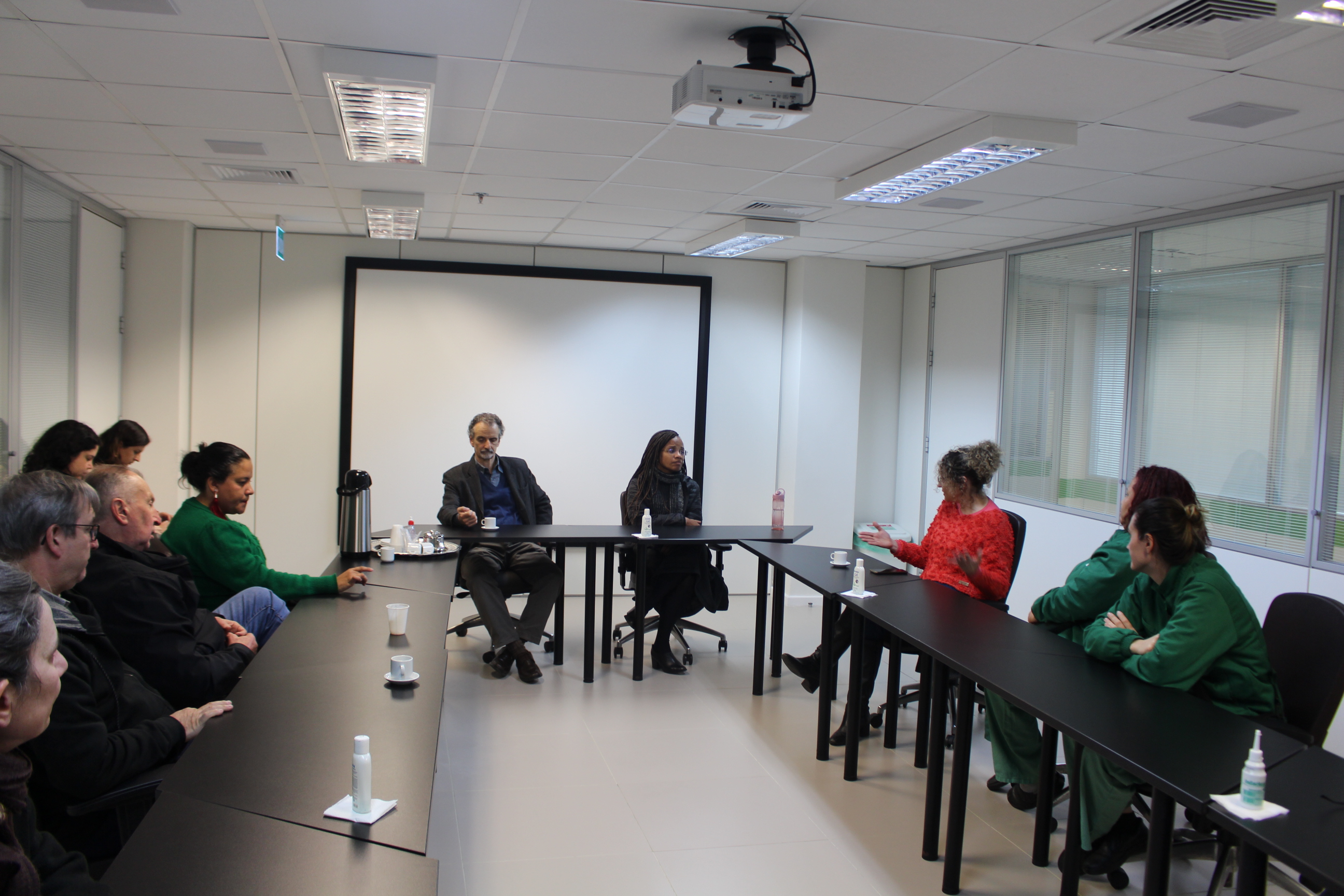 Os diretores do Grupo Hospitalar Conceição Quelen Tanize Alves da Silva e João Motta receberam nesta quarta-feira (14/06) uma comissão do Sindisaúde e representantes dos técnicos em Higienização, acompanhados da deputada estadual Luciana Genro (PSOL).