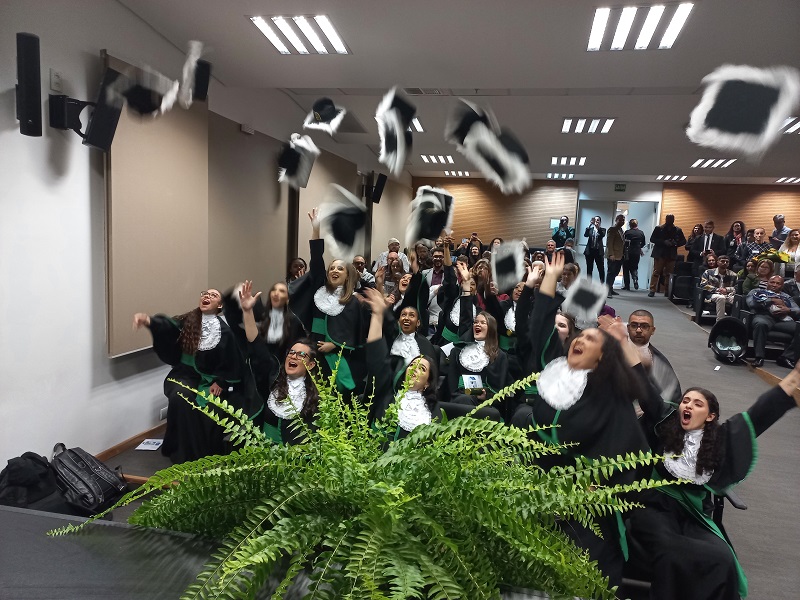 Foi realizada, na tarde do dia 24 de agosto, no Auditório Jahyr Boeira de Almeida, no Centro Administrativo GHC, a formatura da turma 2021/2023 do Curso Técnico em Enfermagem da Escola GHC. Ao todo, 17 alunos fizeram a colação de grau, na presença de docentes, gestores e trabalhadores do GHC e familiares e amigos.