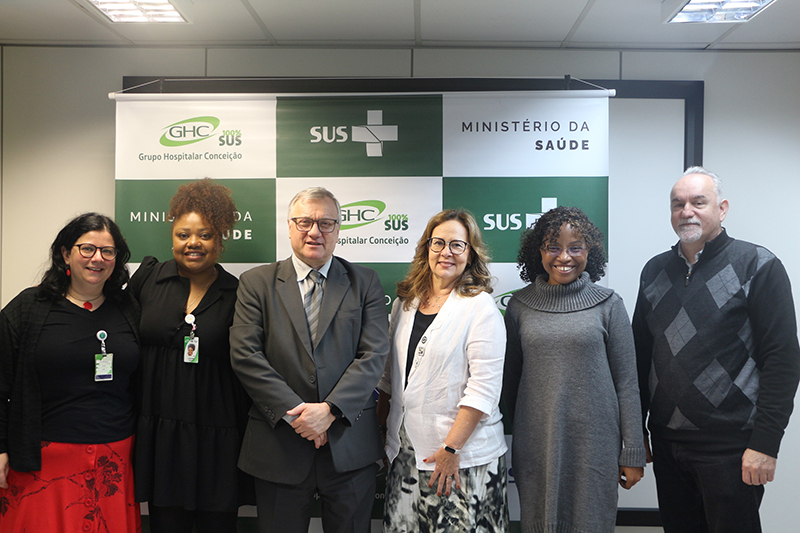 Isabela Cardoso de Matos Pinto foi recepcionada pelo diretor-presidente do GHC, Gilberto Barichello, pela diretora de Inovação, Gestão do Trabalho e Educação, Quelen da Silva, pelo diretor de Atenção à Saúde, Luís Antônio Benvegnú, pela gerente de Gestão de Pessoas, Lisiane Vieira dos Santos, e pela coordenadora de Gestão do Trabalho, Aline Branchi.