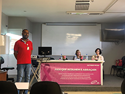 O técnico de enfermagem da Oncologia Marcos Vinícius Soares fez um relato emocionante de suas experiências, destacando a importância do relacionamento com os familiares das pacientes, da escuta e do acolhimento. “Trabalhar com pacientes oncológicos, às vezes, é saber que o pior vai acontecer, mas fazer com que seja da melhor maneira possível”, concluiu Marcos.