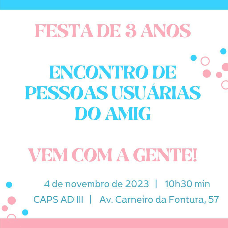 Atualmente, os atendimentos são realizados no CAPS AD III, nas terças e quintas-feiras, das 18 às 21 horas. O agendamento é realizado, preferencialmente, via WhatsApp, pelo número 3341.7557 e há a disponibilidade de acolhimento nos horários de funcionamento.