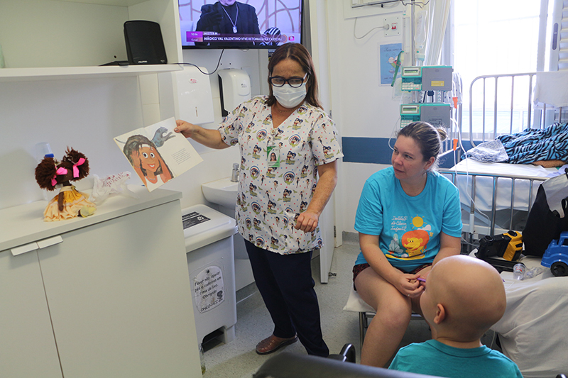 Nesta terça-feira, 14 de novembro, foi realizada contação de histórias no Hospital da Criança Conceição (HCC), em alusão ao Mês da Consciência Negra. O objetivo é que ao longo desta e da próxima semana histórias como “Menina bonita do laço de fita” e “A Bela Adormecida do samba” sejam contadas para as crianças, buscando trazer identificação e representatividade. A atividade, promovida pela Comissão Especial de Promoção de Políticas de Igualdade Racial (Ceppir/GHC), foi realizada pela pedagoga Mayara Bittencourt, na Oncologia do HCC.