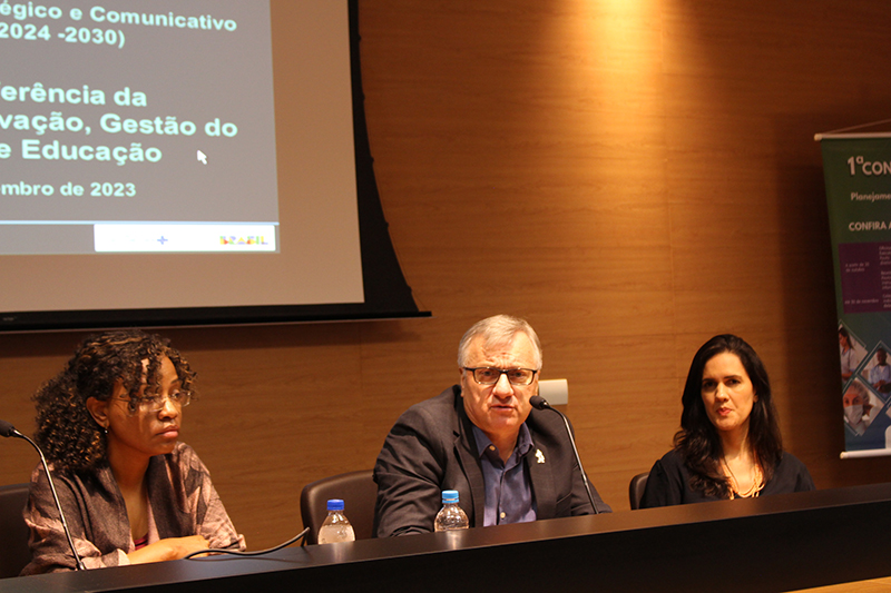 Além de Quelen Silva, a mesa de abertura foi composta também pelo diretor-presidente do GHC, Gilberto Barichello, e por Juliana Ramos Bruno, do Ministério da Saúde.