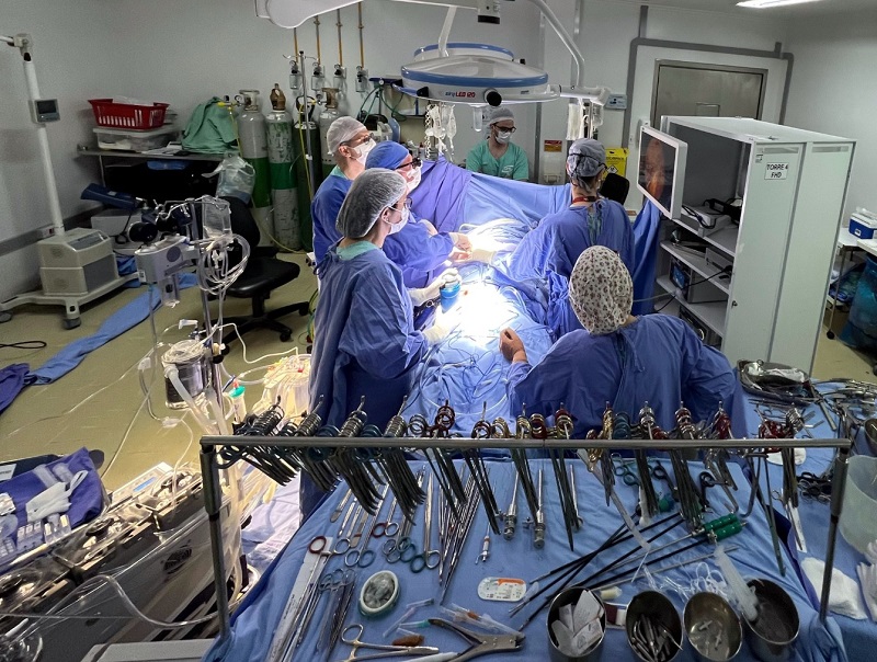 A cirurgia envolveu a participação de equipe multidisciplinar composta por Cirurgiões e Médicos Residentes do Serviço de Cirurgia Cardiovascular, além de profissionais da anestesiologista, perfusionista, equipes de Enfermagem do Bloco Cirúrgico, de pré e pós-operatório.