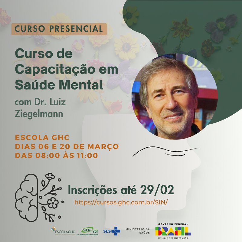 Nos dias 6 e 20 de março, o Grupo Hospitalar Conceição irá realizar um curso de capacitação em saúde mental, com o objetivo de qualificar a formação profissional em saúde mental tanto em relação aos processos de trabalho como nas ações relacionadas aos cuidados com o paciente, tendo como eixos principais a produção de saúde na clínica e a intensificação da vida.