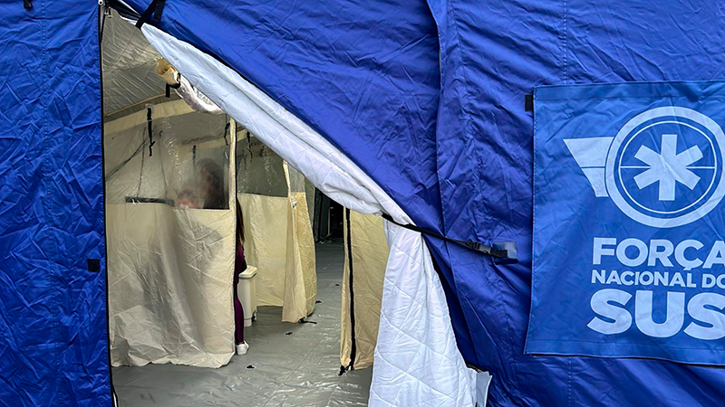 O Hospital de Campanha, instalado junto à UPA Moacyr Scliar, em Porto Alegre, desde o dia 14 de maio, soma mais de 300 atendimentos. A iniciativa do Ministério da Saúde, por meio da Força Nacional do SUS, em parceria com o Grupo Hospitalar Conceição, funciona 24 horas por dia. “Com esta estrutura, conseguimos fazer frente ao aumento populacional registrado naquela região em função da enchente”, afirma o diretor-presidente do GHC, Gilberto Barichello.