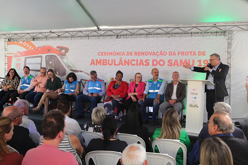 A ministra Nísia Trindade também entregou nesta sexta-feira 30 ambulâncias do Serviço de Atendimento Móvel de Urgência (SAMU 192) para os municípios mais atingidos pelas cheias. A solenidade aconteceu no estacionamento do GHC, junto ao Centro Administrativo. Além disso, a ministra anunciou a remessa de mil computadores, a serem encaminhados para 365 Unidades Básicas de Saúde (UBSs) e hospitais de 142 municípios, afetados pela tragédia ambiental. “Com o apoio do GHC, estamos trabalhando na perspectiva da reconstrução, fortalecendo o SUS, abrindo leitos e, agora, fazendo a entrega de ambulâncias e computadores”, assegurou ela.