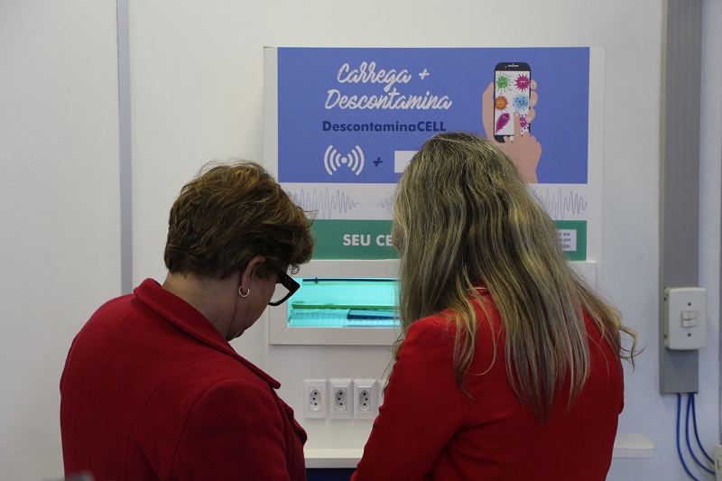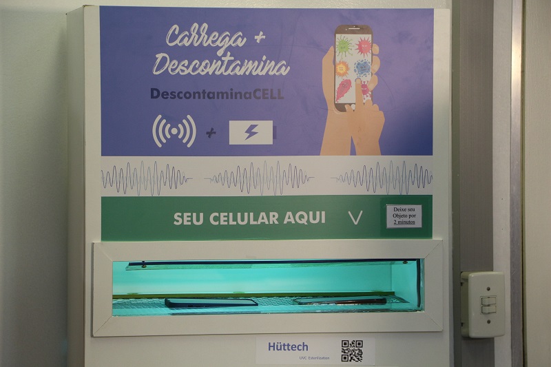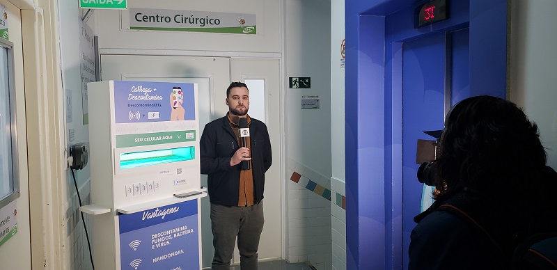O Grupo Hospitalar Conceição (GHC) deu um passo importante em direção à inovação em biossegurança para garantir que a atuação dos profissionais e o atendimento aos usuários do SUS seja seguro e eficiente. Nesta terça-feira (16/7), no Hospital Criança Conceição (HCC), foi implantado o projeto EsterilizaCell, resultado da parceria entre a instituição e a Hüttech, empresa com sede na Tecnopuc. O totem, que também está instalado na UPA Moacyr Scliar, tem por objetivo fazer a descontaminação de celulares através de Nanoondas (UV-C), com aprovação ISO 45001 e 17025. O médico Fernando Anschau, assessor da Diretoria de Inovação, Gestão do Trabalho e Educação do Grupo (DIGTE), salienta a importância desta tecnologia na redução de infecções hospitalares, ocasionadas pela presença milhares de bactérias nos aparelhos.