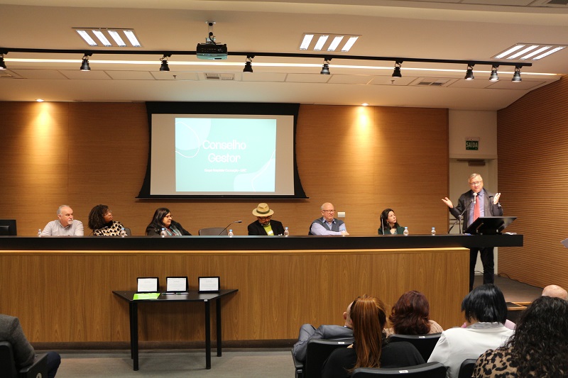 Estavam presentes na mesa de abertura o diretor-presidente do GHC, Gilberto Barichello, a diretora de Inovação, Gestão do Trabalho e Educação do GHC, Quelen Silva, o diretor de Atenção à Saúde do GHC, Luís Antônio Benvegnú, o representante do Conselho Nacional de Saúde, Eder Pereira da Silva, e a presidente do Conselho Estadual de Saúde, Inara Ruas.