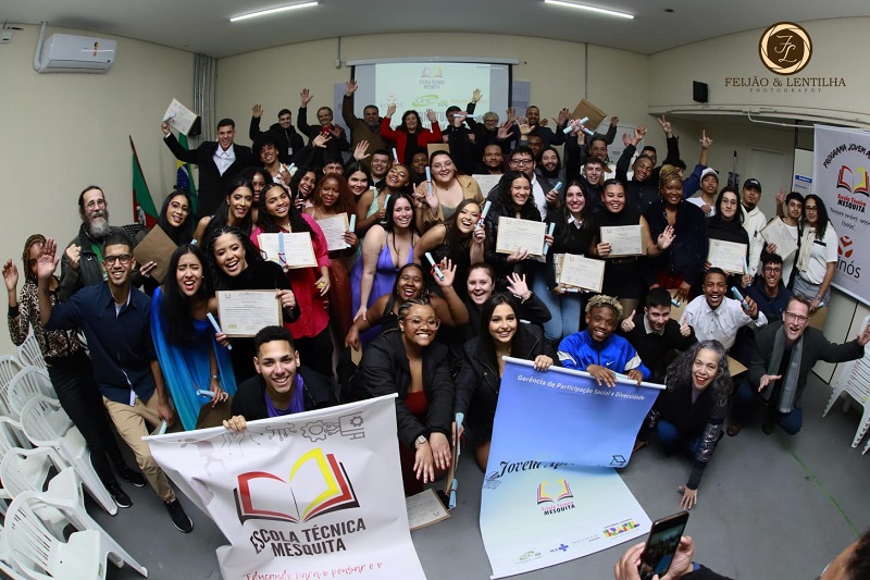 Na última sexta-feira, 9 de agosto, na Escola Mesquita, 83 jovens aprendizes se formaram nos cursos de formação profissional de assistentes administrativos (27), atendentes de nutrição (32) e auxiliares de manutenção elétrica e eletrônica (24), numa parceria da Escola Técnica José César de Mesquita e, na condição de cotizadoras dos jovens, o GHC, o Grupo Zaffari e a Associação de Hospitais de Porto Alegre.