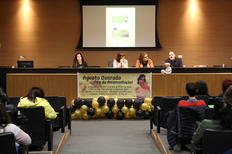 Nesta quarta-feira, 28 de agosto, ocorreu, no Auditório Jahyr Boeira de Almeida, no Centro Administrativo GHC, evento alusivo ao Agosto Dourado, organizado pelo Grupo de Incentivo ao Aleitamento Materno Exclusivo dos Hospitais Conceição e Criança Conceição (Giame HNSC/HCC). O objetivo foi conscientizar as equipes a fim de promover e fortalecer as práticas em aleitamento materno na população atendida pelo Grupo Hospitalar Conceição. O evento foi dirigido aos profissionais que trabalham na assistência à saúde materno-infantil, assim como estudantes e público interessado nessa temática.