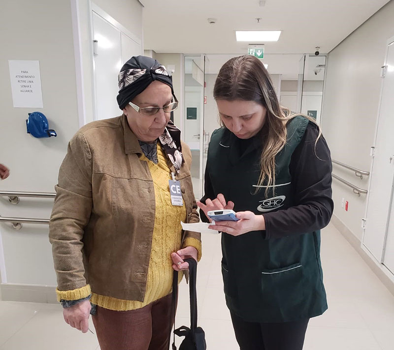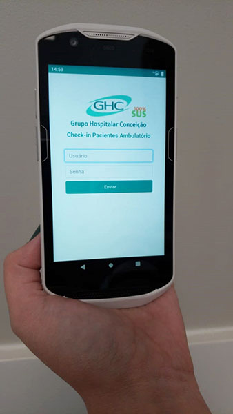 Iniciou, no dia 26 de agosto, o uso de dispositivo móvel para check-in de pacientes atendidos no ambulatório do Centro de Oncologia e Hematologia do GHC. A Gerência de Informática desenvolveu um aplicativo para dispositivo móvel que realiza a confirmação da presença (check-in) de pacientes atendidos no ambulatório de consultas e quimioterapia. A implantação dessa nova tecnologia já reduziu em 15 minutos o tempo médio de atendimento dos pacientes, garantindo maior agilidade no procedimento de chegada dos pacientes.