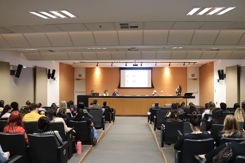 A diretora de Inovação, Gestão do Trabalho e Educação do GHC, Quelen Tanize Alves da Silva, falou sobre o cotidiano da saúde e a importância desse olhar enquanto processo de gestão, ensino e inovação no cuidado em saúde. Além da diretora, estavam na mesa de abertura o coordenador do setor de pesquisa e da Jornada Científica do GHC, Daniel Demétrio Faustino da Silva, o gerente da Escola GHC, Edenilson Bomfim da Silva, e a presidenta do Conselho Estadual de Saúde do Rio Grande do Sul, Inara Ruas.